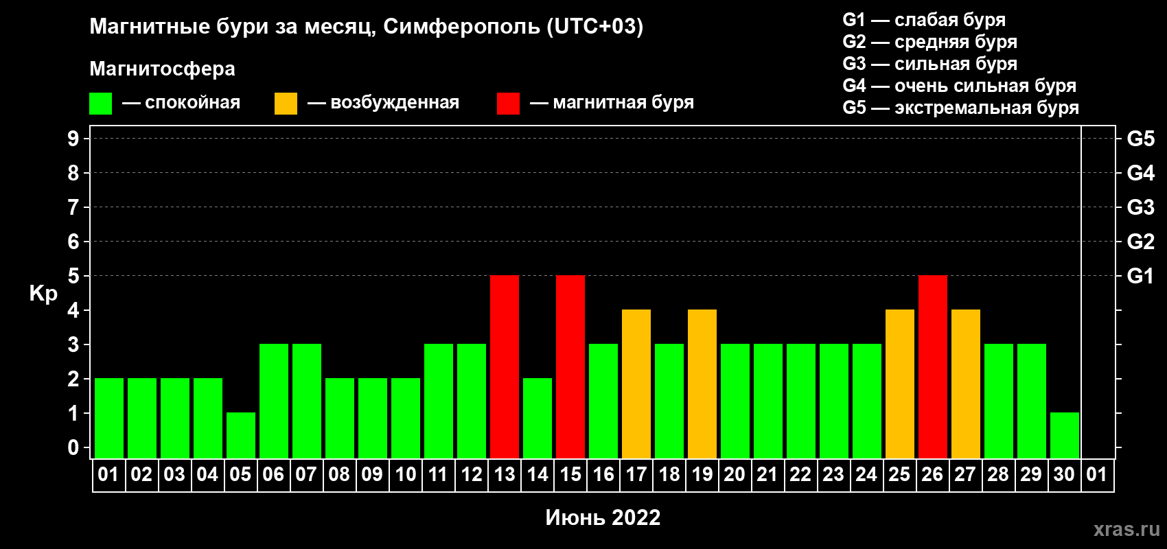 Магнитные бури в Симферополе в июне 2022 года