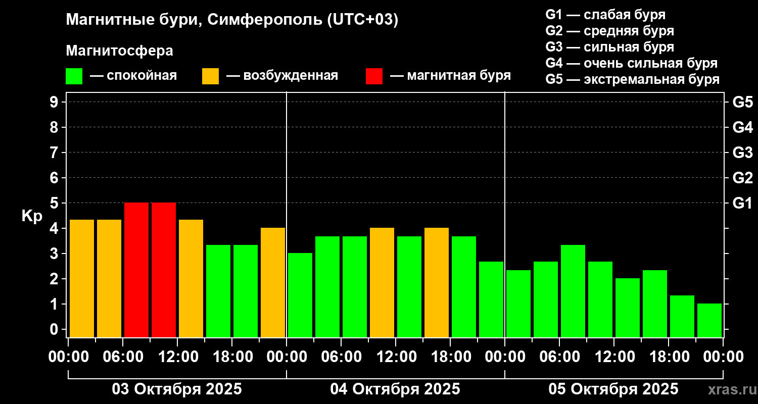 Магнитные бури в Симферополе — 5 октября 2025 года