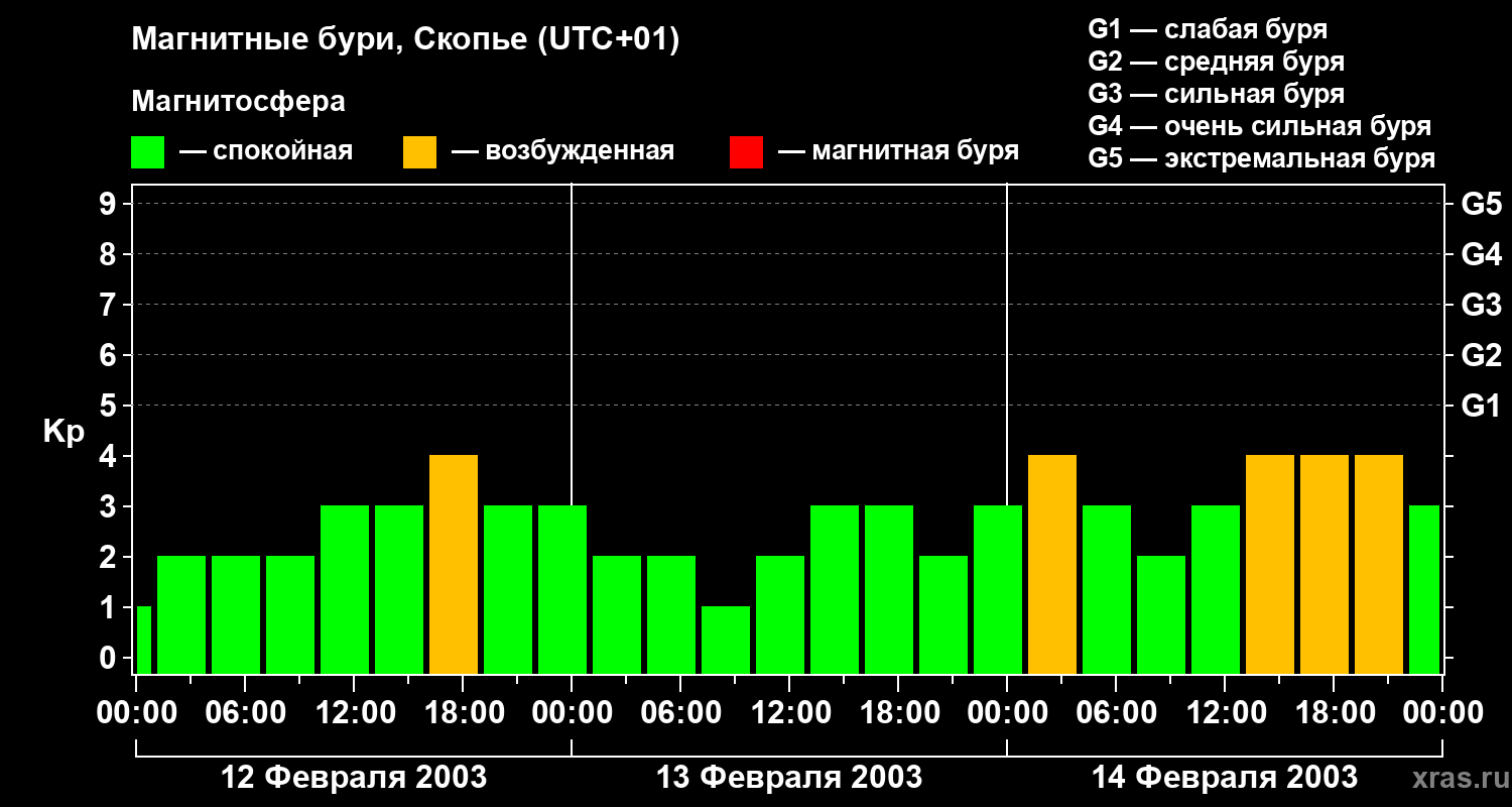 Магнитные бури в Скопье — 14 февраля 2003 года
