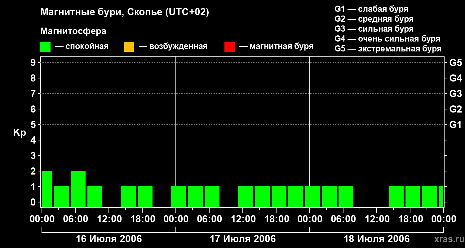 Изменения геомагнитного индекса Kp с 16 по 18 июля 2006 года для средних широт