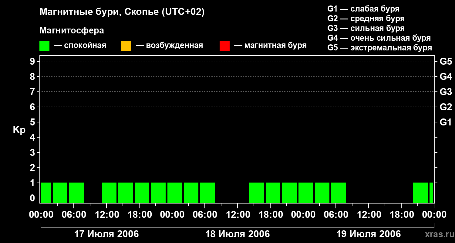 Изменения геомагнитного индекса Kp с 17 по 19 июля 2006 года для средних широт