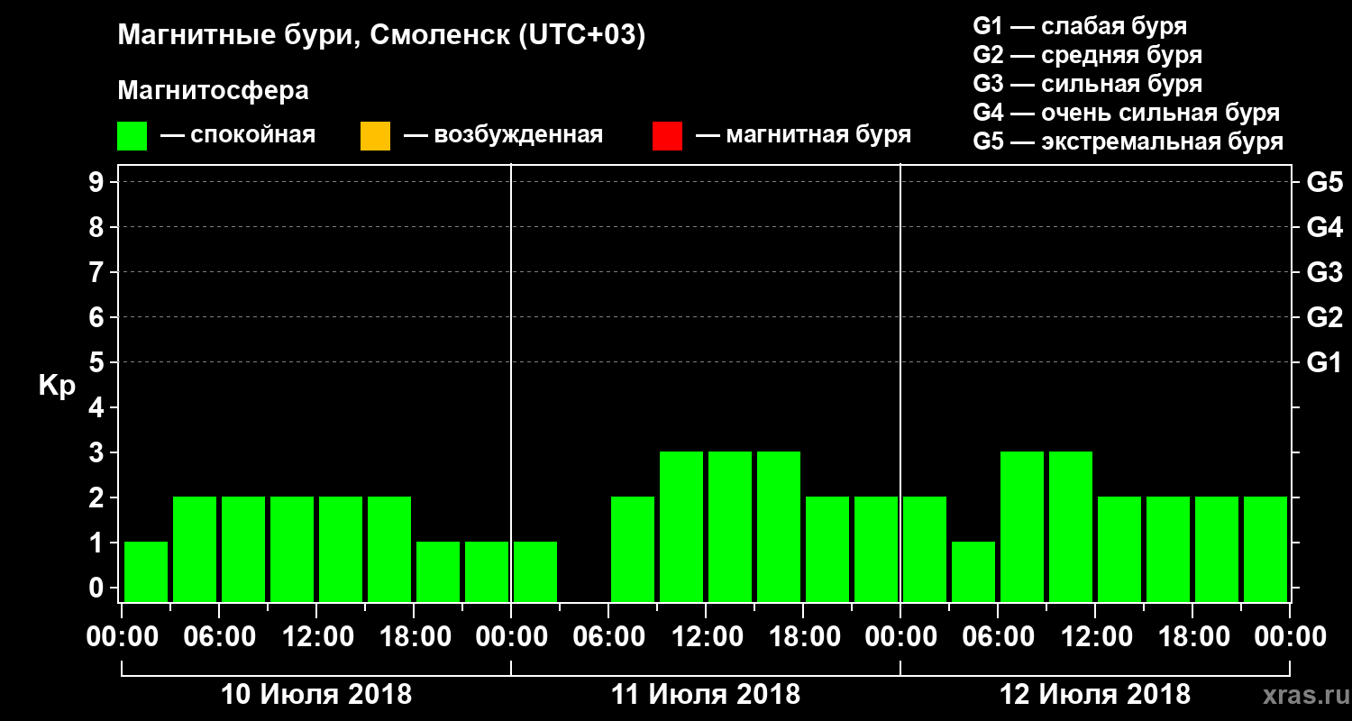 Магнитные бури в Смоленске 12 июля 2018 года