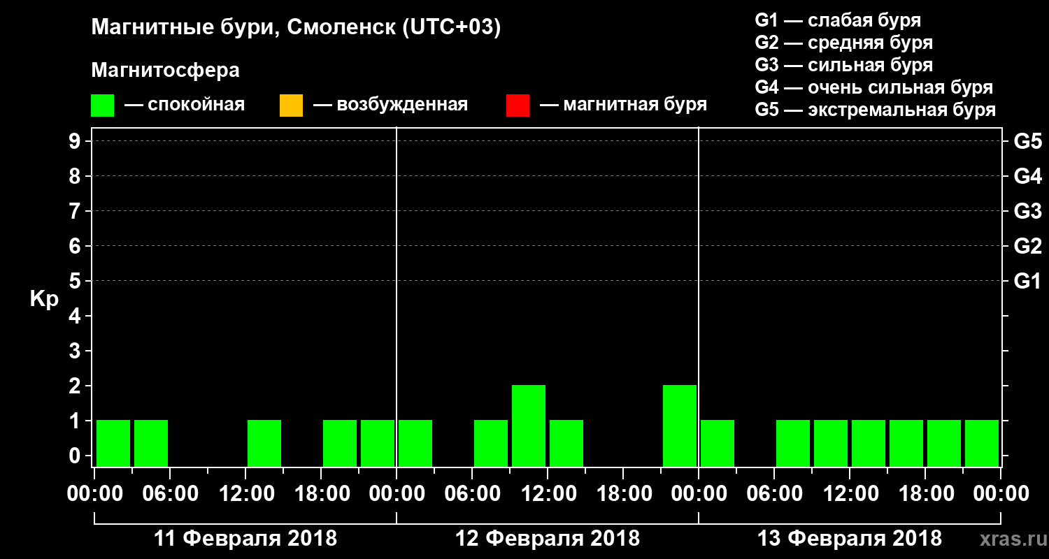 Магнитные бури в Смоленске 13 февраля 2018 года