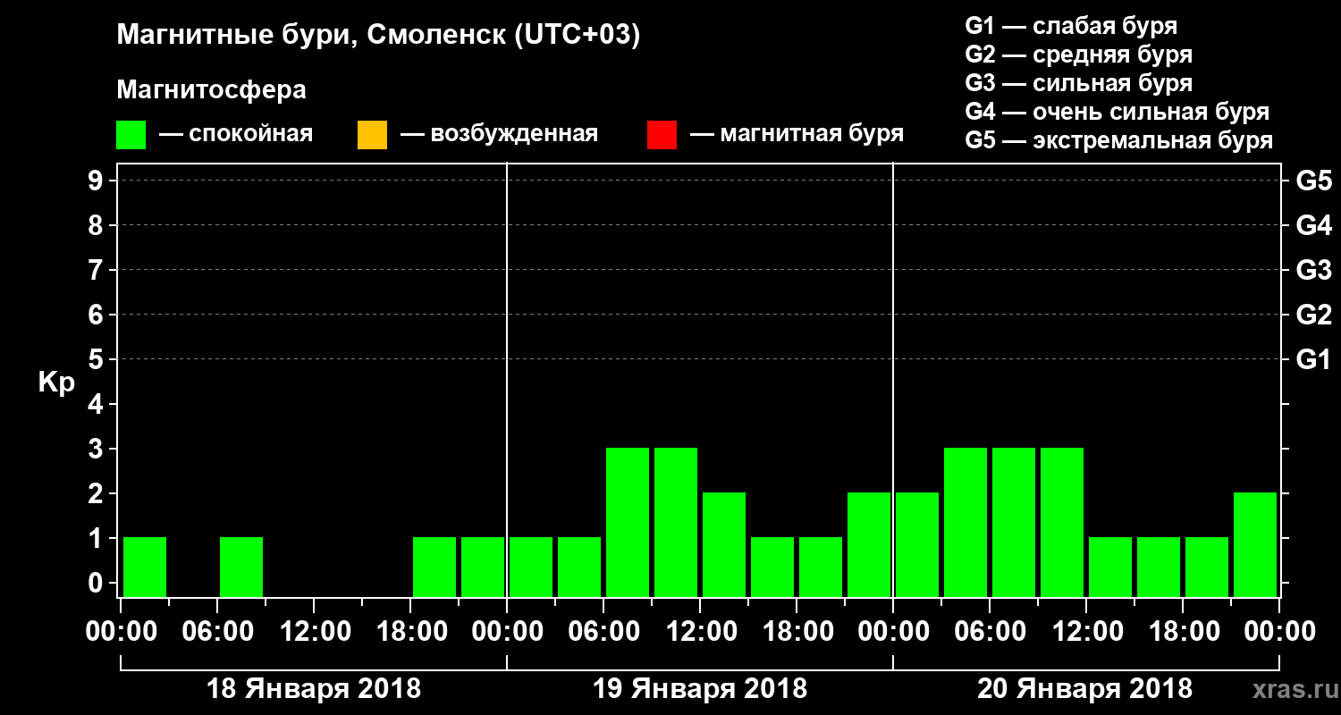 Магнитные бури в Смоленске 20 января 2018 года