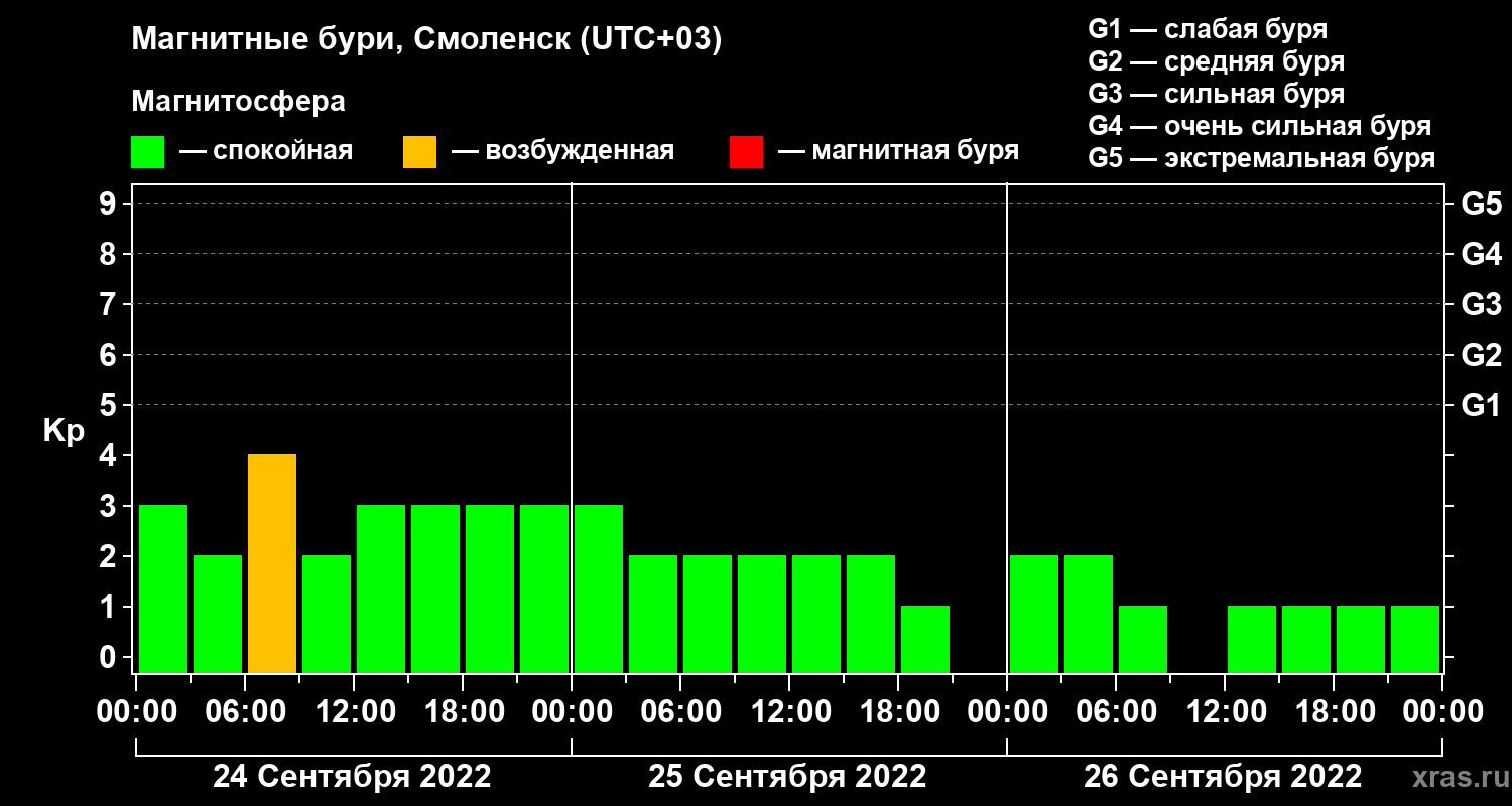 Магнитные бури в Смоленске 26 сентября 2022 года