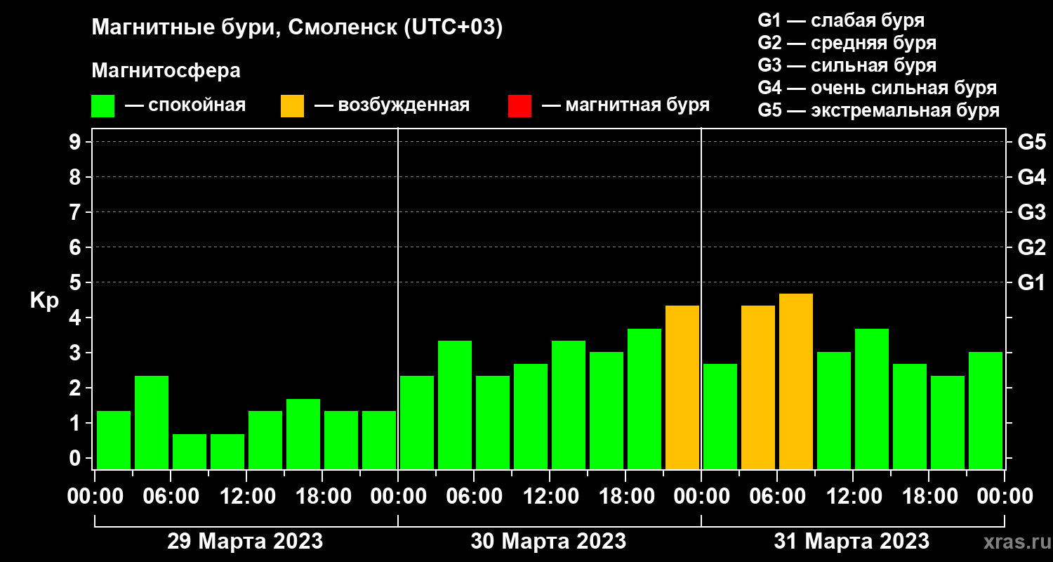 Магнитные бури в Смоленске — 31 марта 2023 года