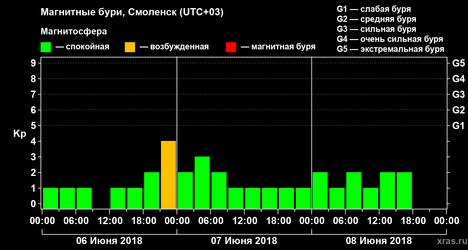 Магнитные бури в Смоленске 8 июня 2018 года