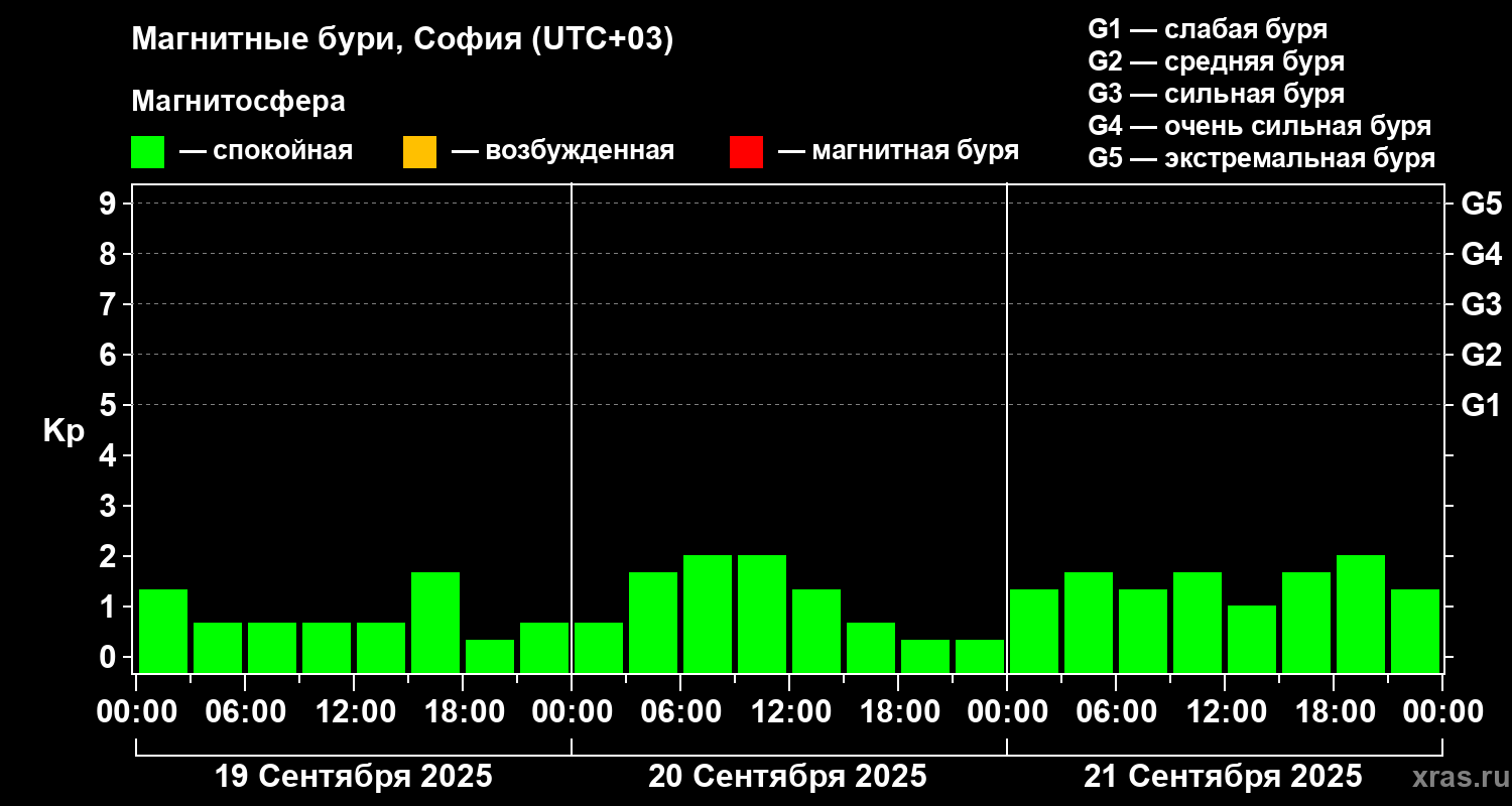 Магнитные бури в Софии 21 сентября 2025 года