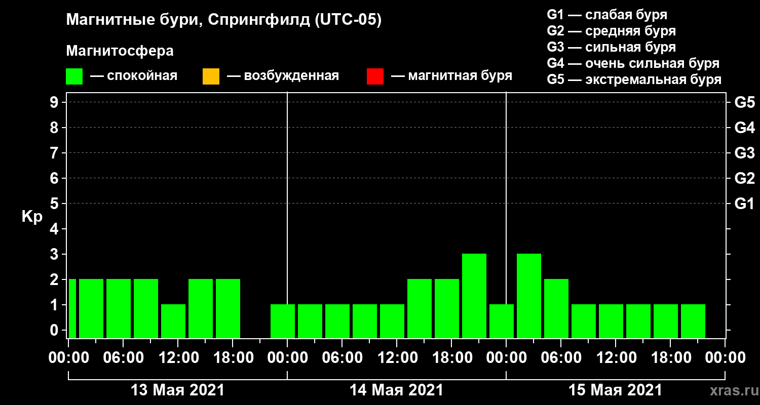 Магнитные бури в Спрингфилде 15 мая 2021 года