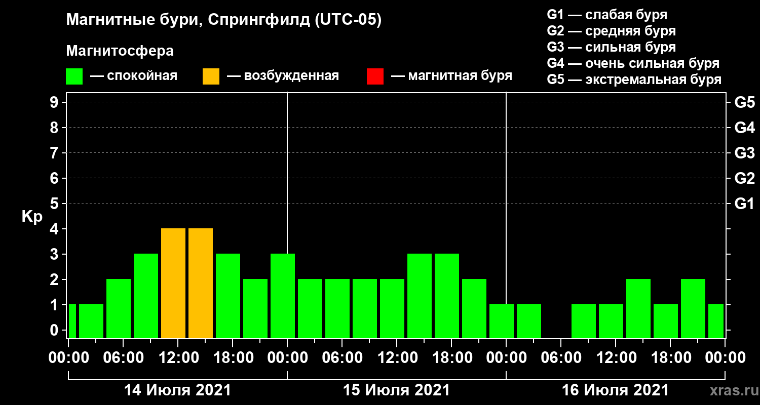 Магнитные бури в Спрингфилде 16 июля 2021 года