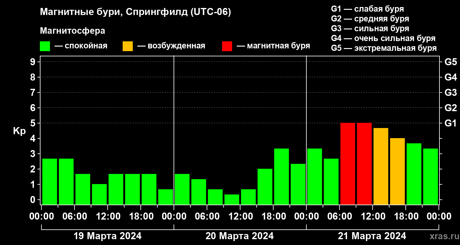 Магнитные бури в Спрингфилде 21 марта 2024 года