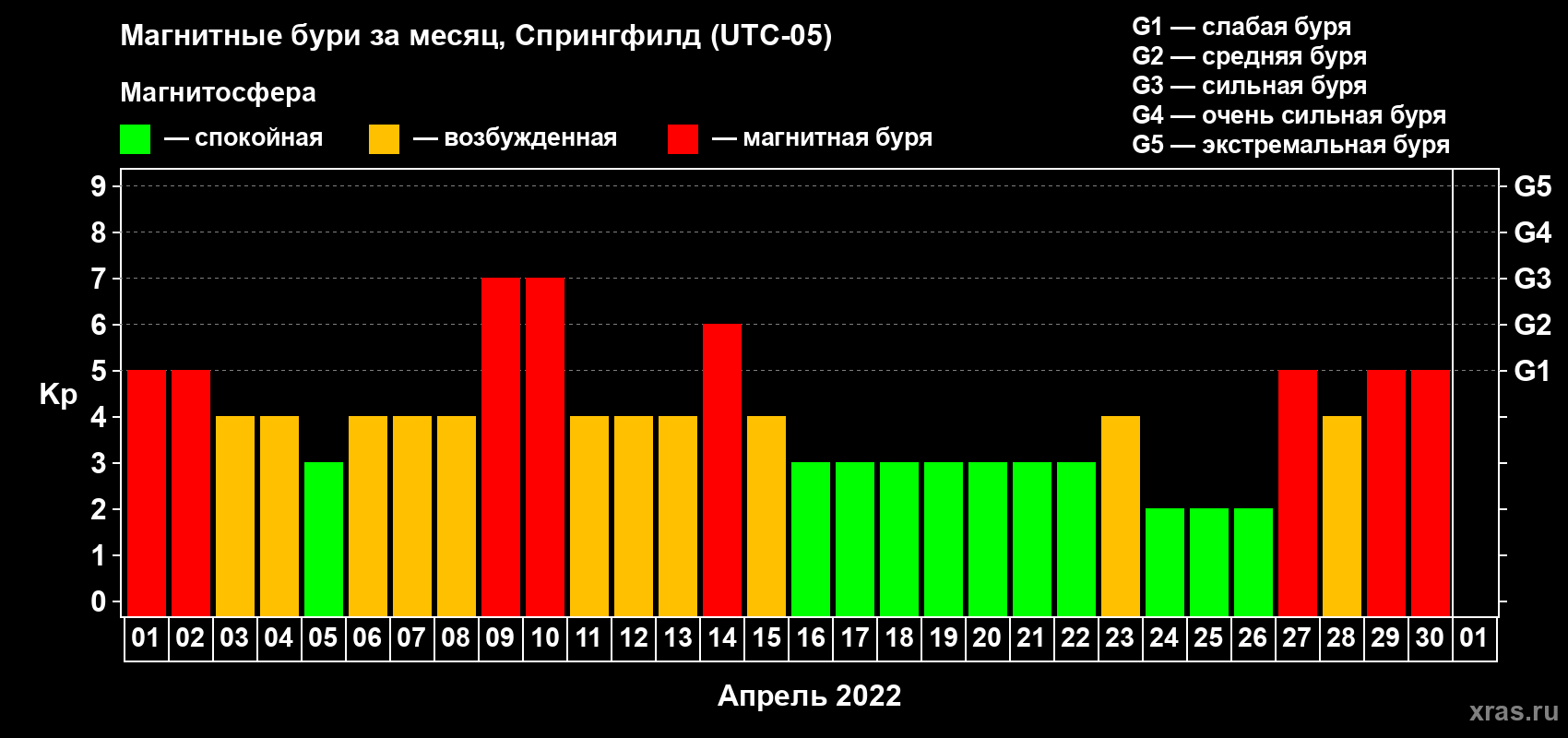 Магнитные бури в Спрингфилде 30 апреля 2022 года