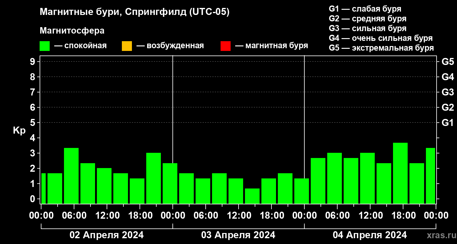 Магнитные бури в Спрингфилде 4 апреля 2024 года