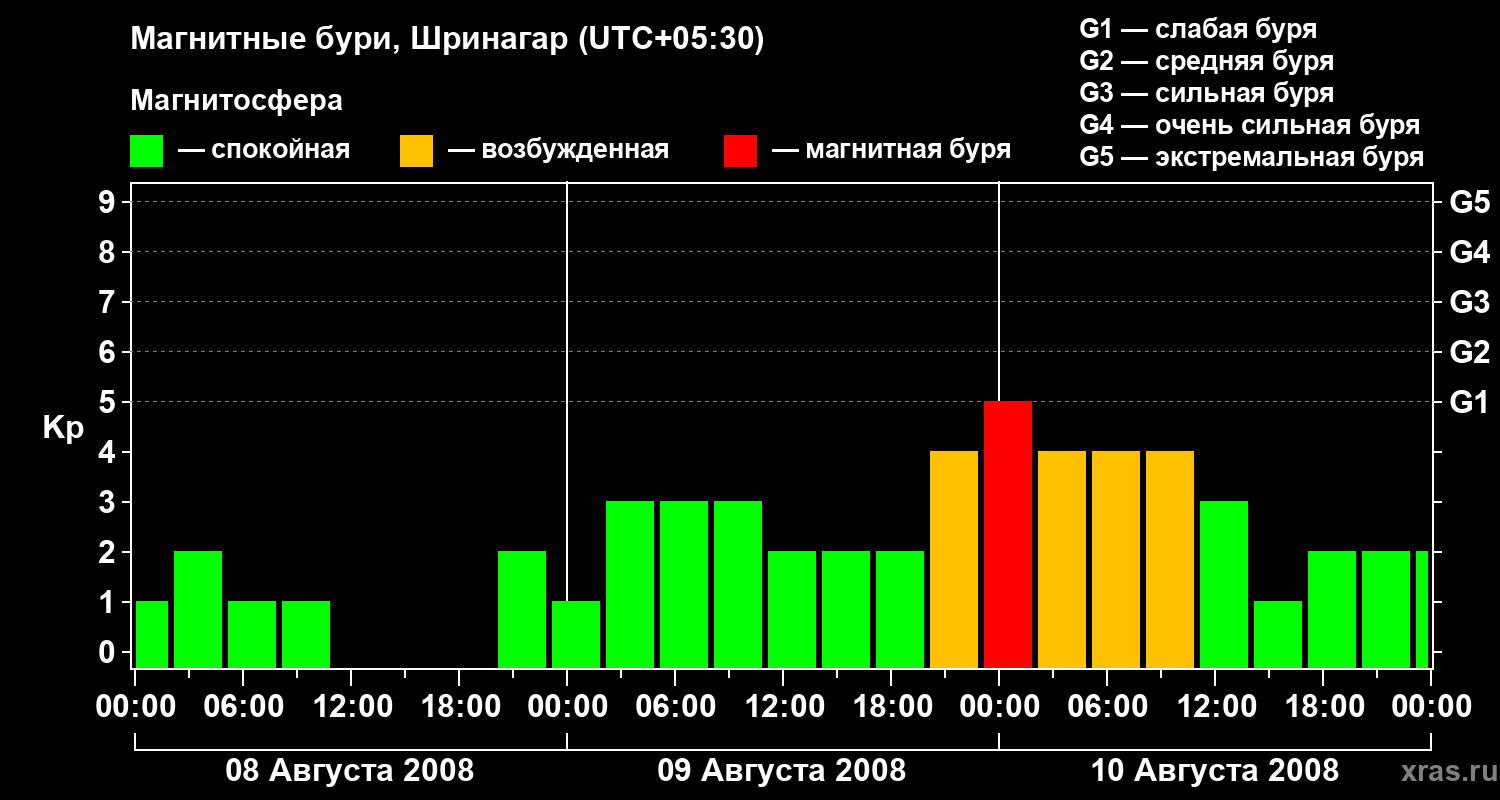 Магнитные бури в Шринагаре 10 августа 2008 года