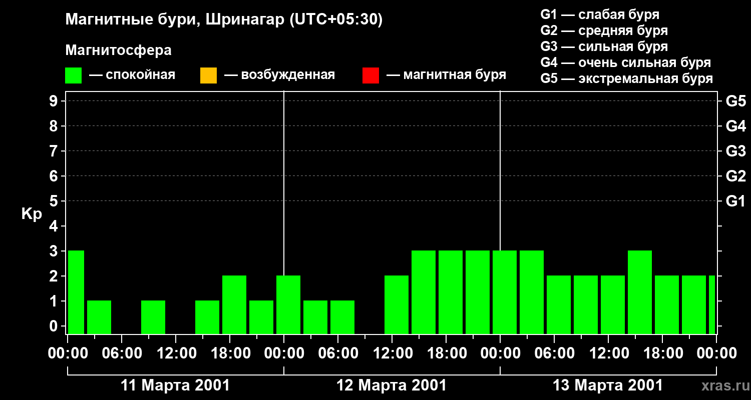 Магнитные бури в Шринагаре 13 марта 2001 года