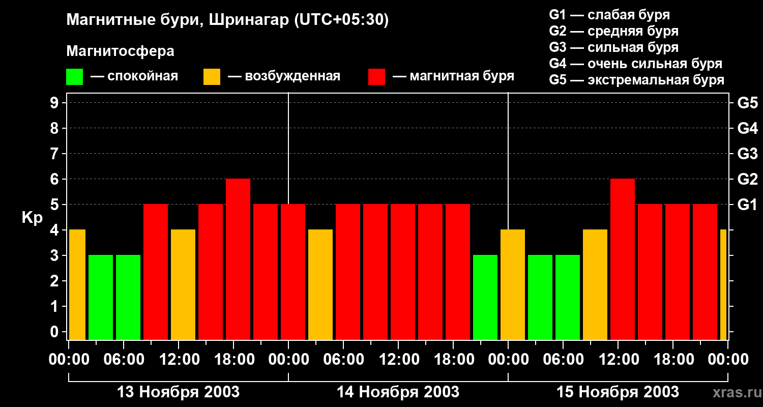 Магнитные бури в Шринагаре — 15 ноября 2003 года
