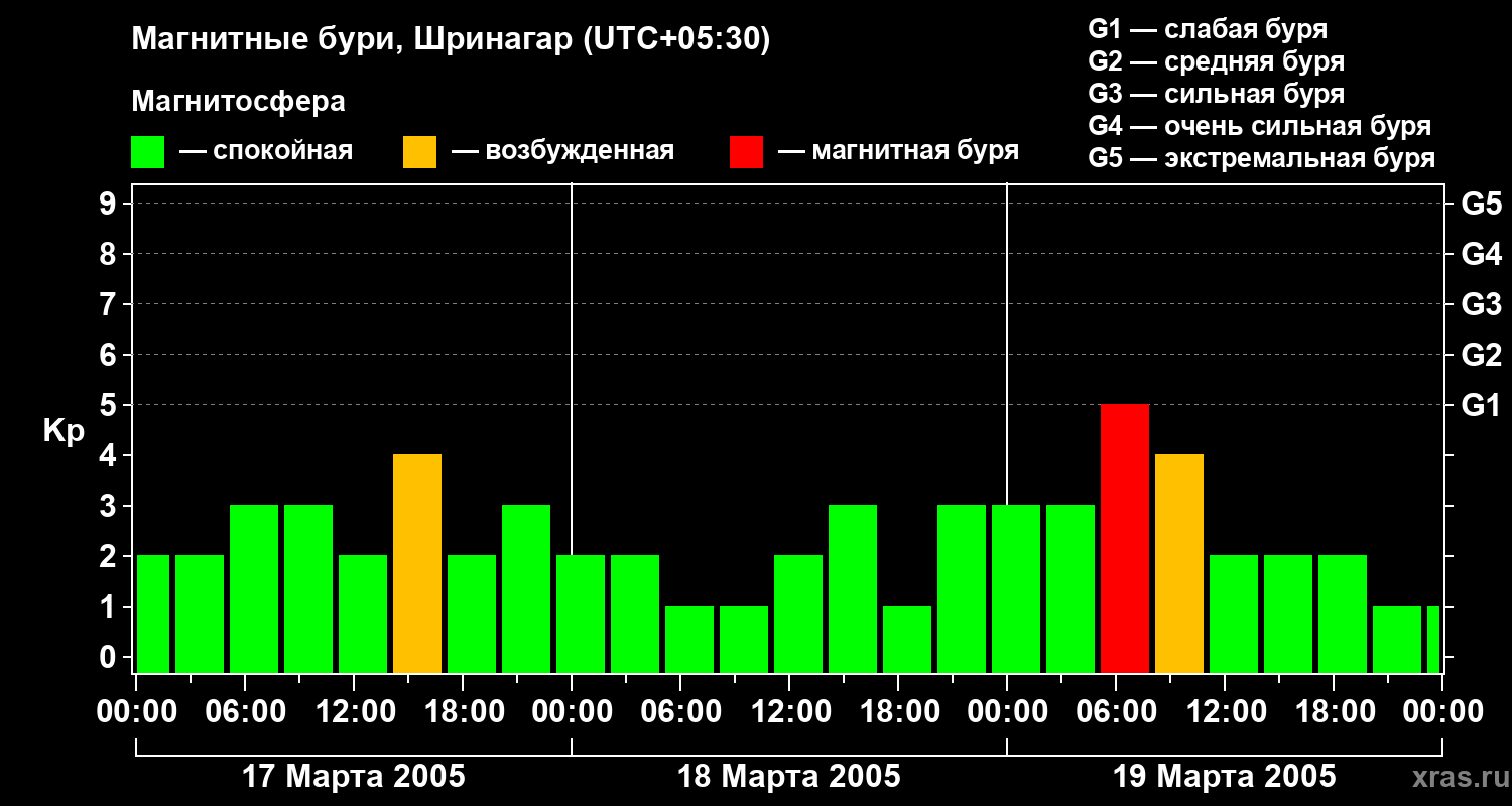 Магнитные бури в Шринагаре — 19 марта 2005 года