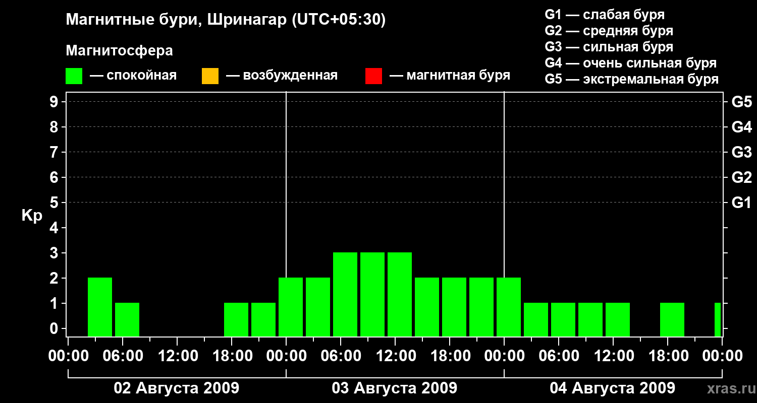 Магнитные бури в Шринагаре 4 августа 2009 года