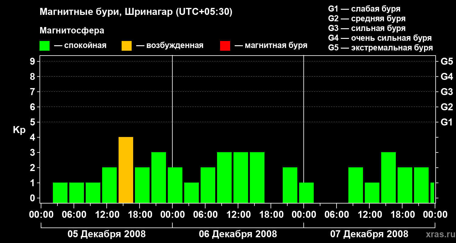 Магнитные бури в Шринагаре 7 декабря 2008 года
