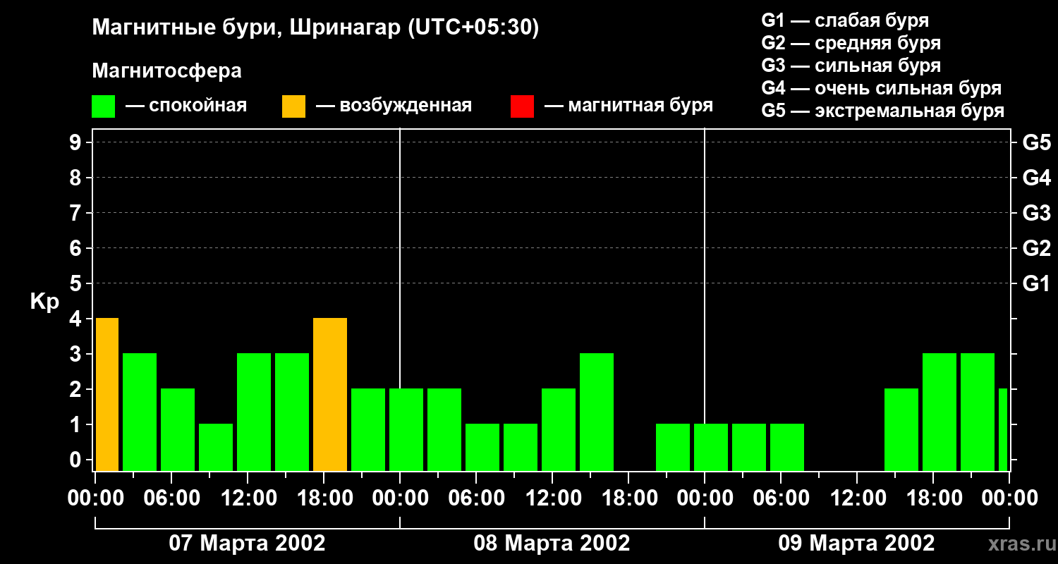 Магнитные бури в Шринагаре 9 марта 2002 года