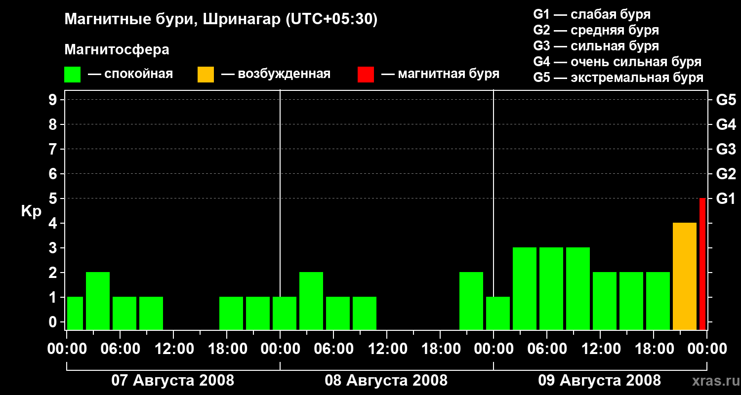 Магнитные бури в Шринагаре 9 августа 2008 года