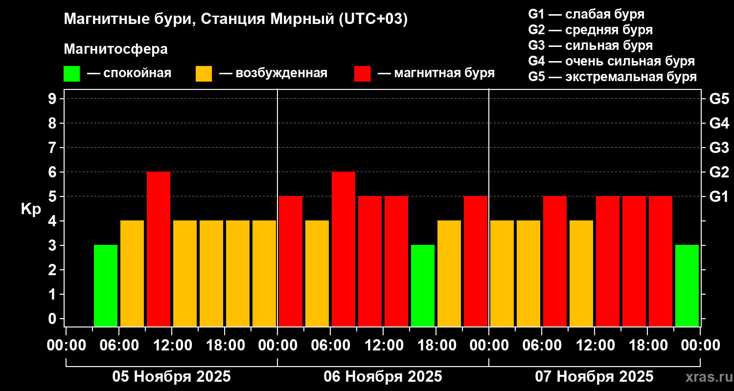Магнитные бури локации Станция Мирный 7 ноября 2025 года