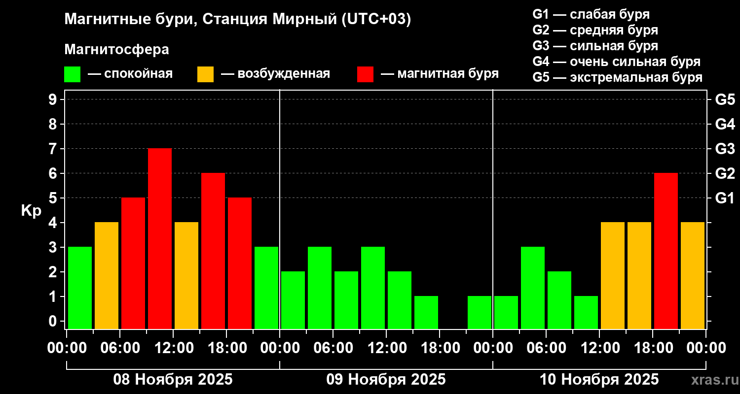 Магнитные бури локации Станция Мирный 10 ноября 2025 года