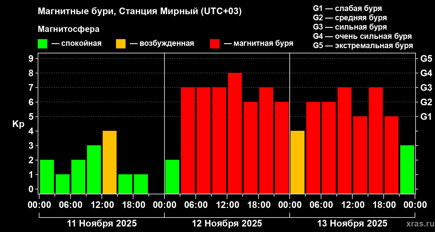 Магнитные бури локации Станция Мирный 13 ноября 2025 года
