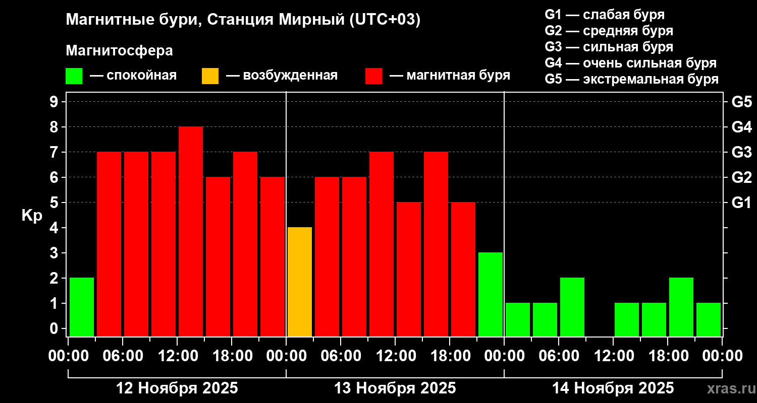 Магнитные бури локации Станция Мирный 14 ноября 2025 года