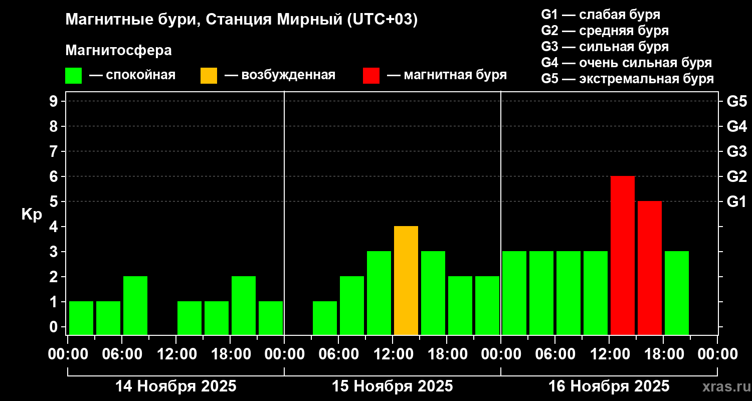 Магнитные бури локации Станция Мирный 16 ноября 2025 года
