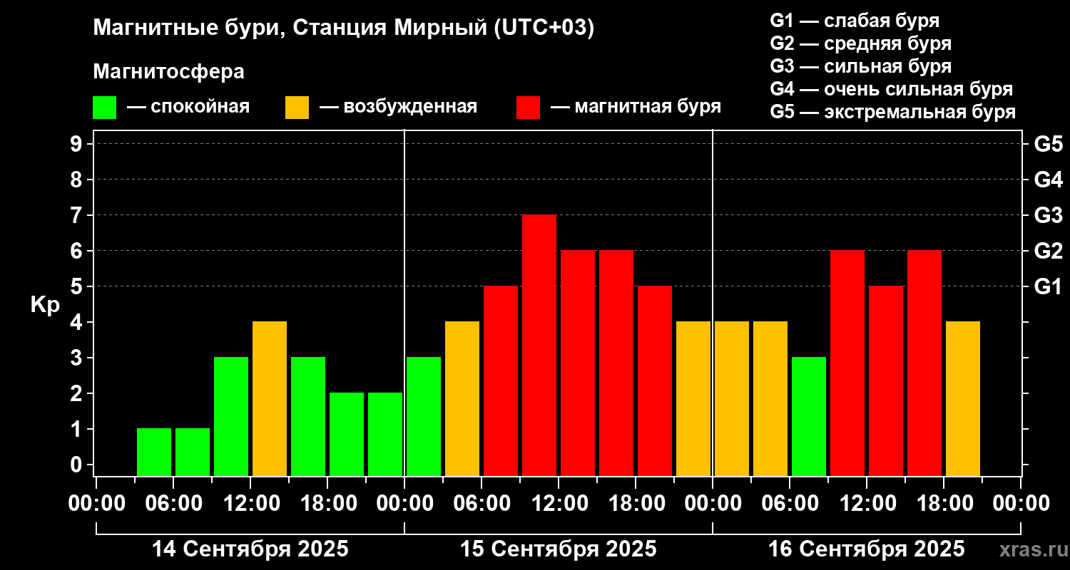 Магнитные бури локации Станция Мирный — 16 сентября 2025 года