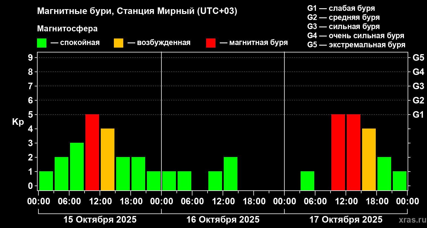 Магнитные бури локации Станция Мирный 17 октября 2025 года