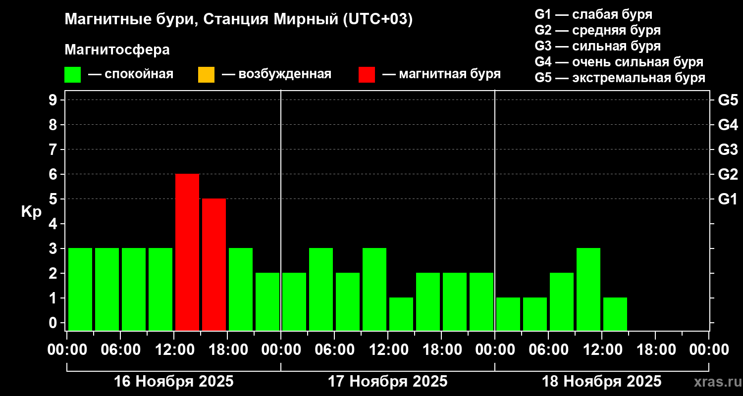 Магнитные бури локации Станция Мирный 18 ноября 2025 года