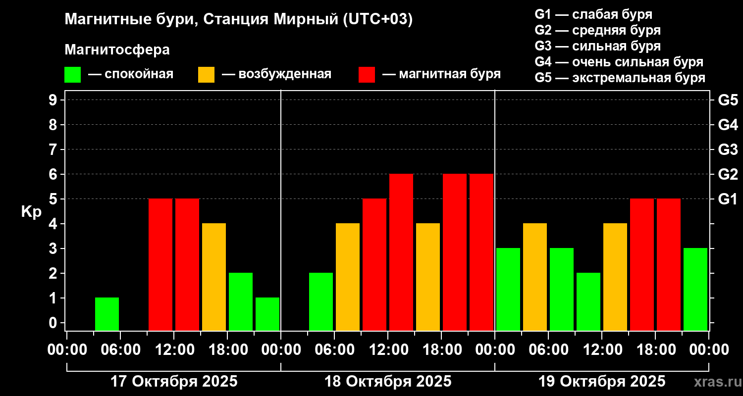 Магнитные бури локации Станция Мирный 19 октября 2025 года
