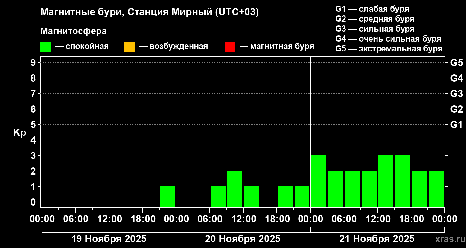 Магнитные бури локации Станция Мирный 21 ноября 2025 года