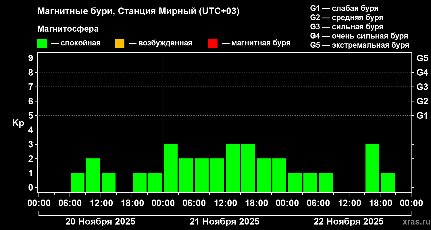 Магнитные бури локации Станция Мирный 22 ноября 2025 года