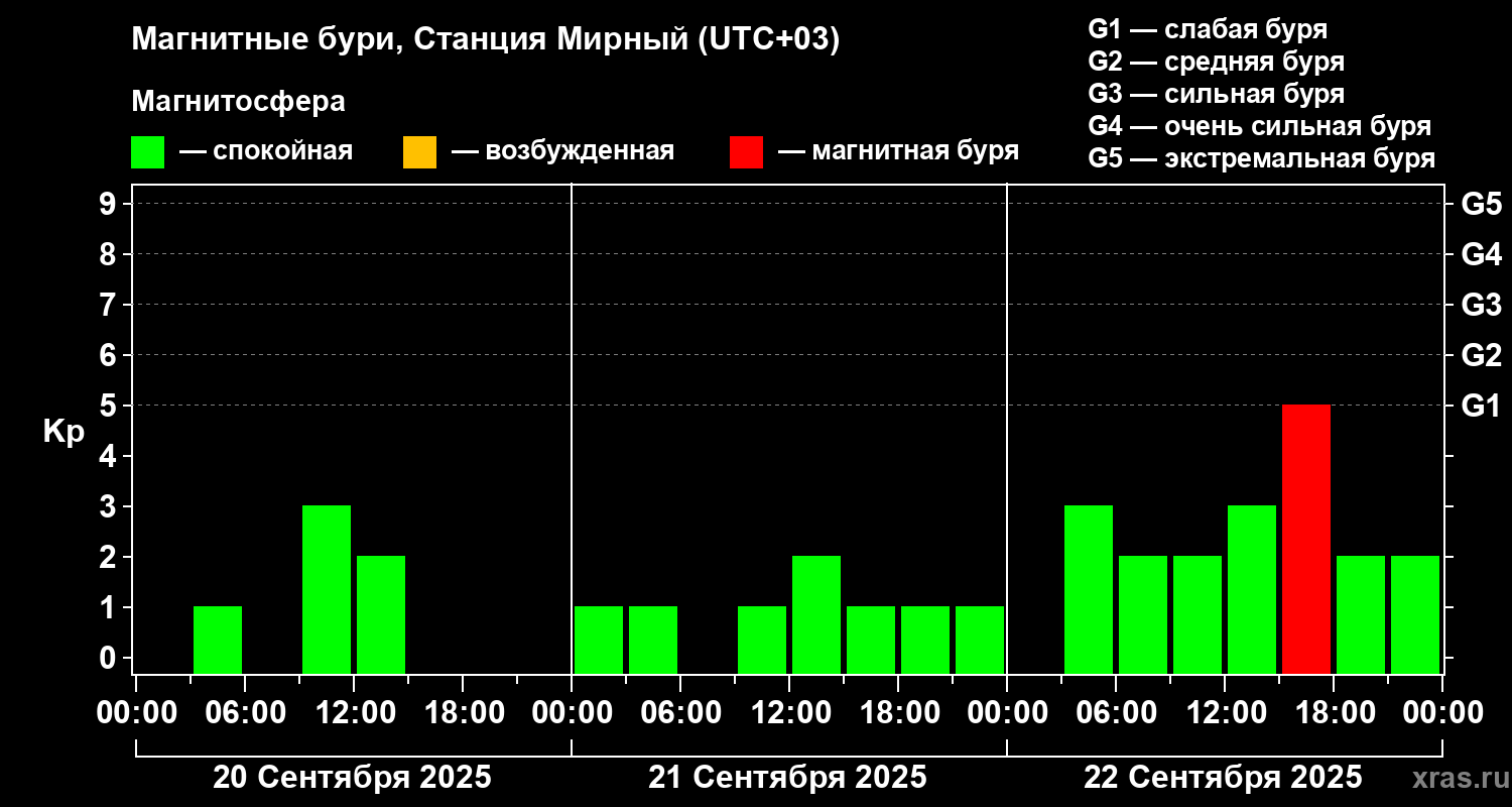 Магнитные бури локации Станция Мирный 22 сентября 2025 года