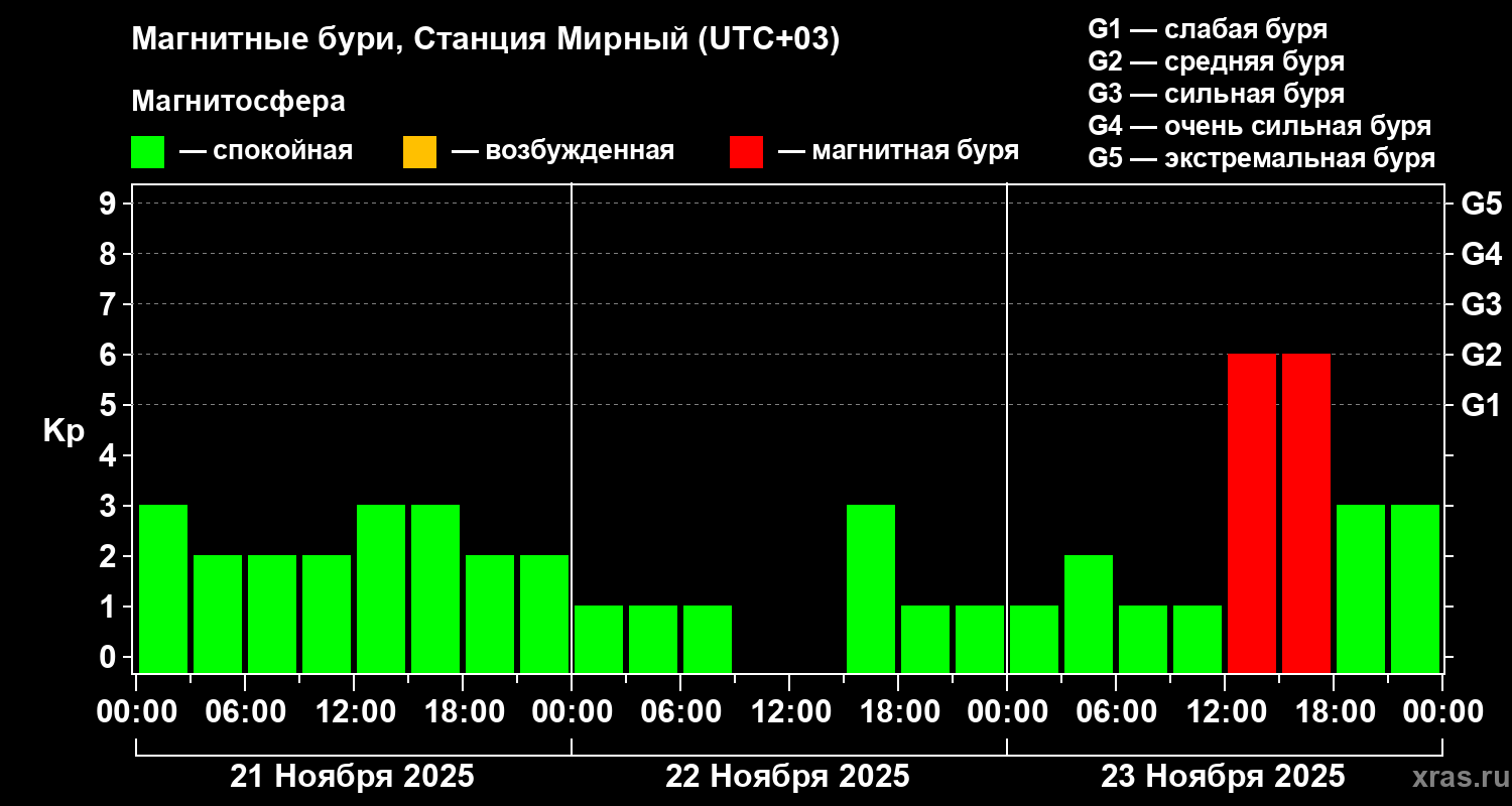 Магнитные бури локации Станция Мирный 23 ноября 2025 года