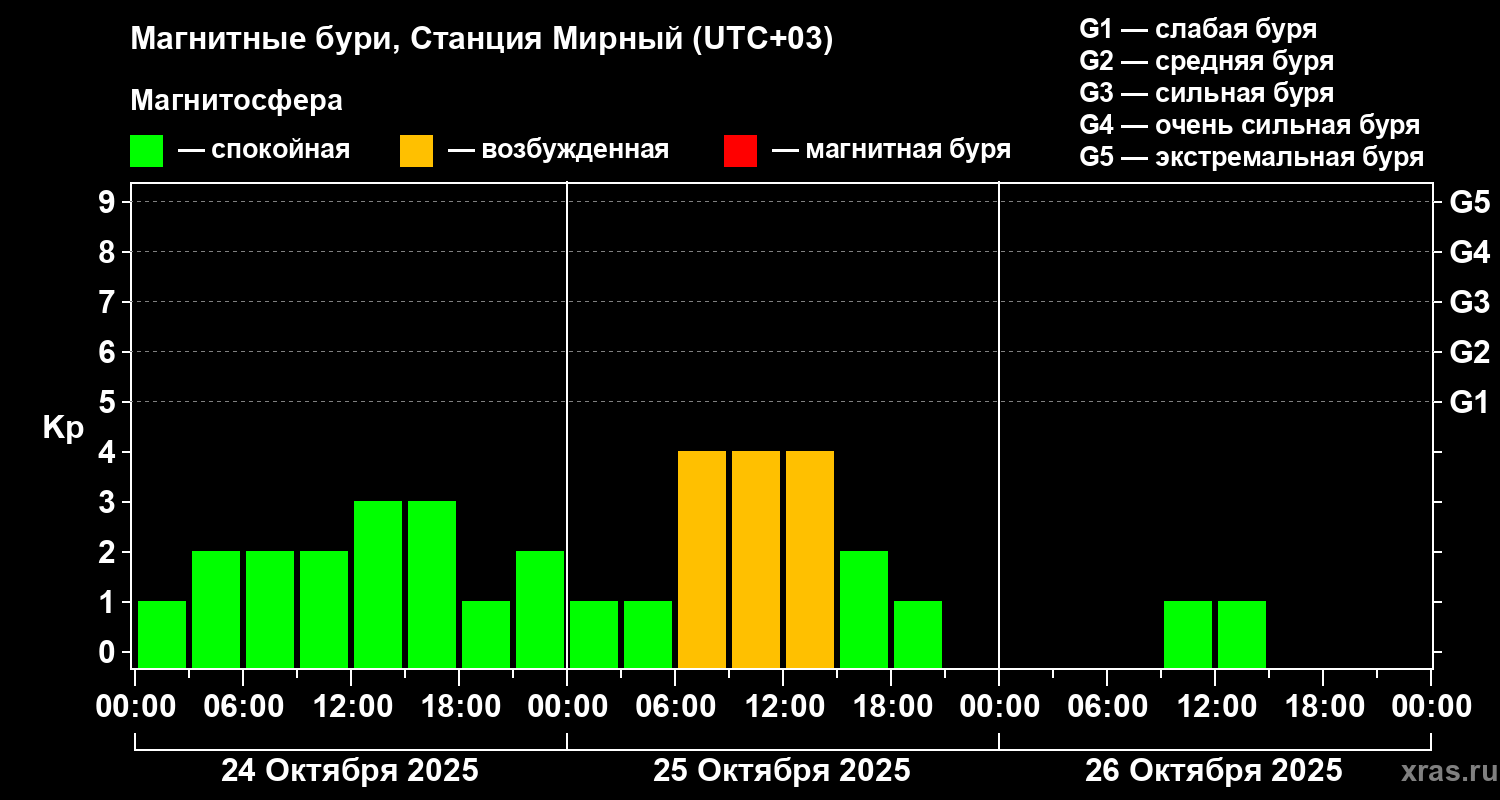 Магнитные бури локации Станция Мирный 26 октября 2025 года