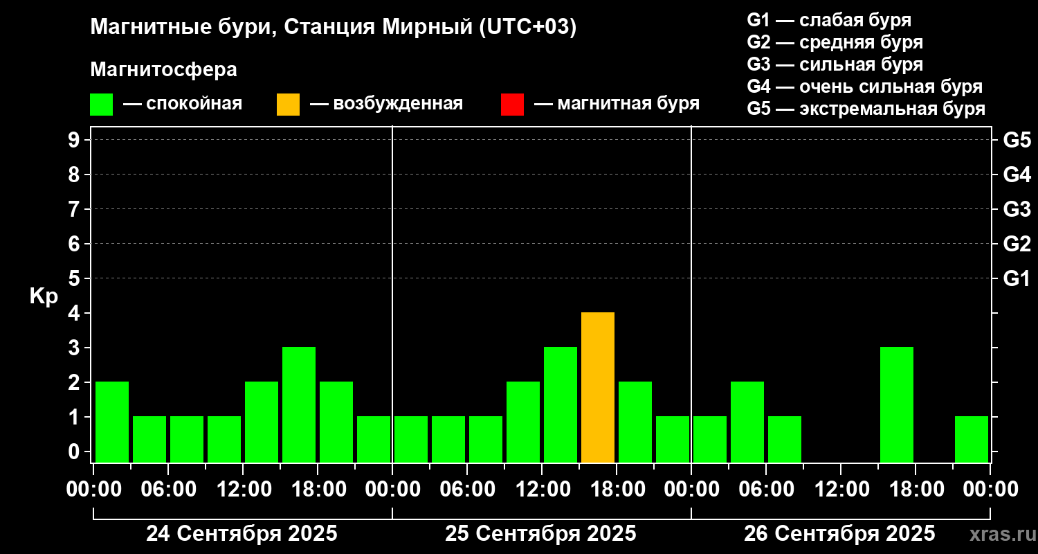 Магнитные бури локации Станция Мирный 26 сентября 2025 года