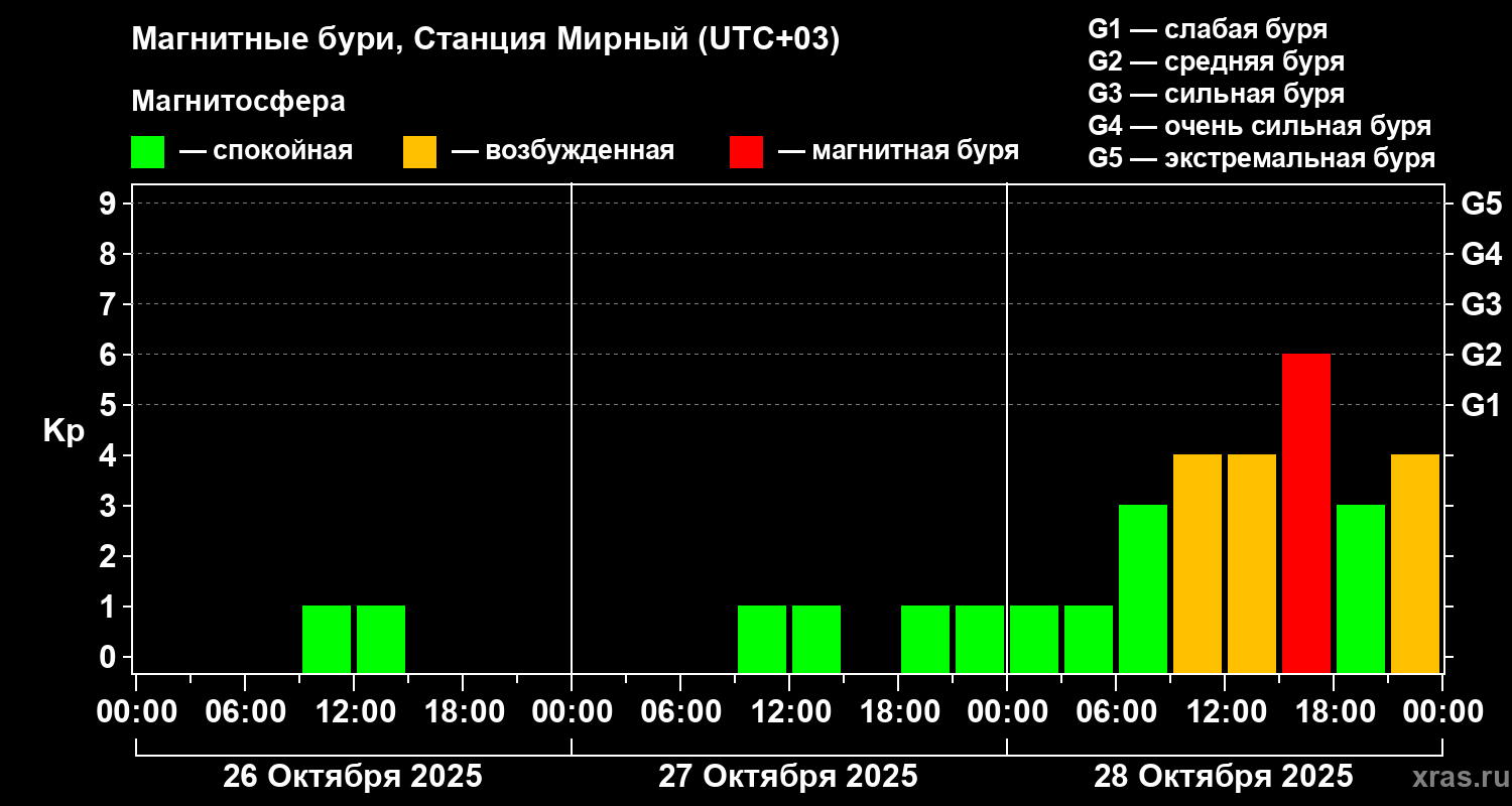 Магнитные бури локации Станция Мирный 28 октября 2025 года