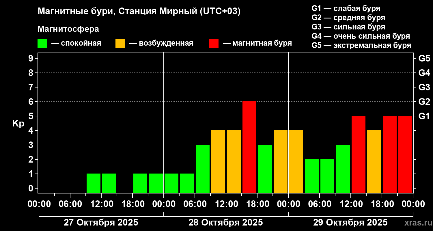 Магнитные бури локации Станция Мирный 29 октября 2025 года