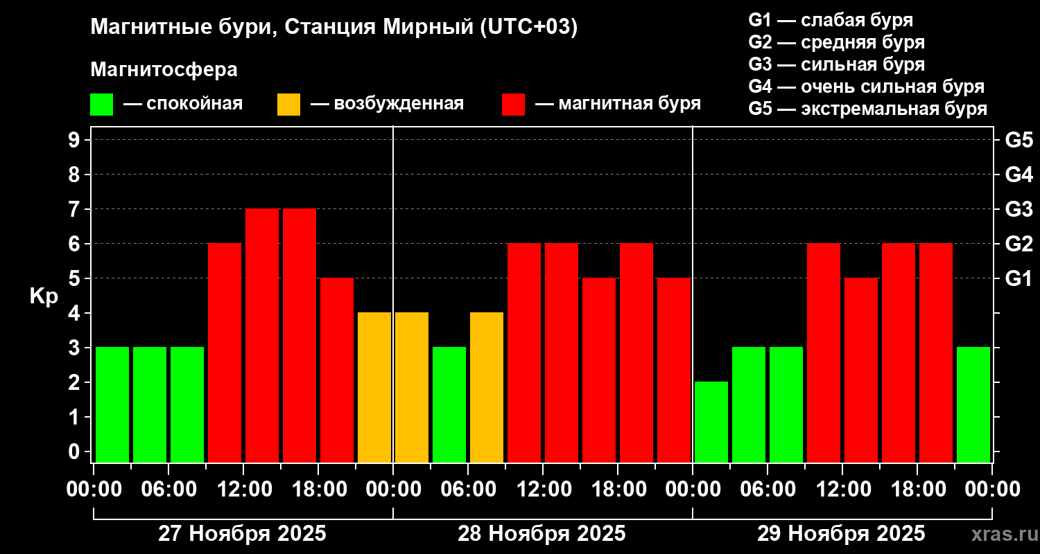 Магнитные бури локации Станция Мирный 29 ноября 2025 года