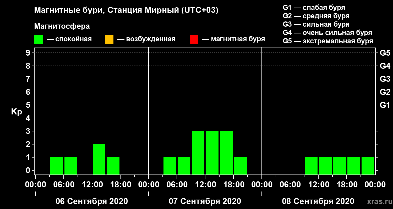 Магнитные бури локации Станция Мирный — 8 сентября 2020 года