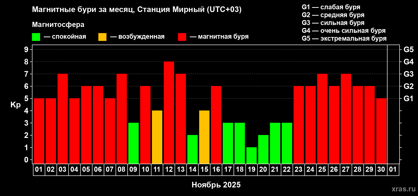30 ноября 2025 года — Магнитная буря уровня G1