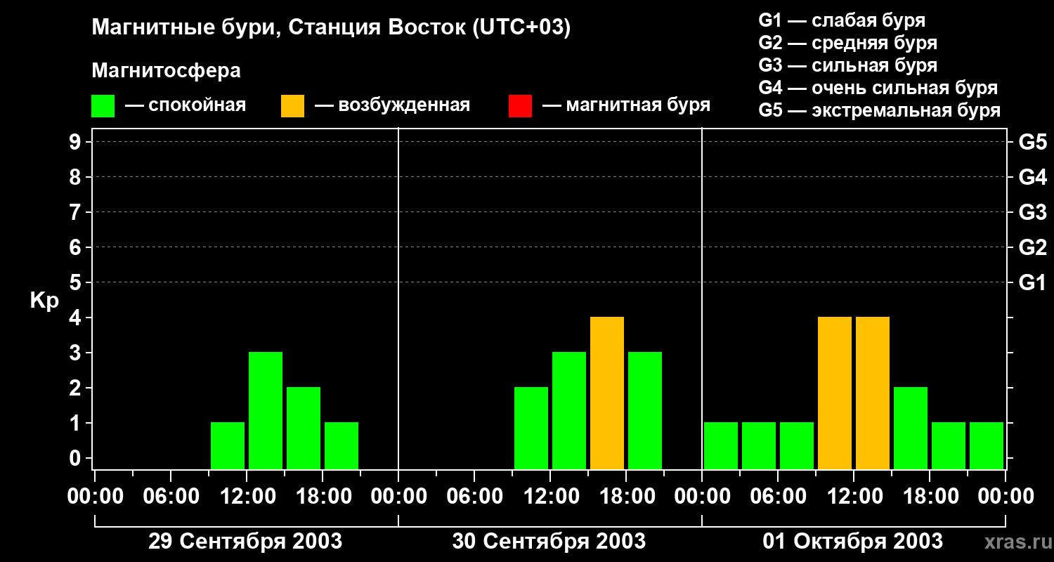 Магнитные бури локации Станция Восток — 1 октября 2003 года