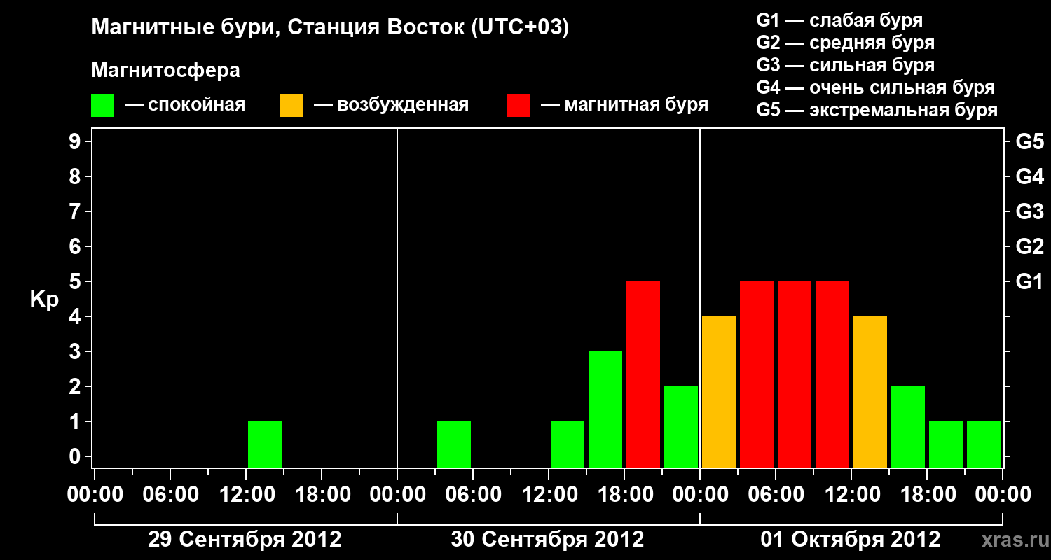 Магнитные бури локации Станция Восток — 1 октября 2012 года