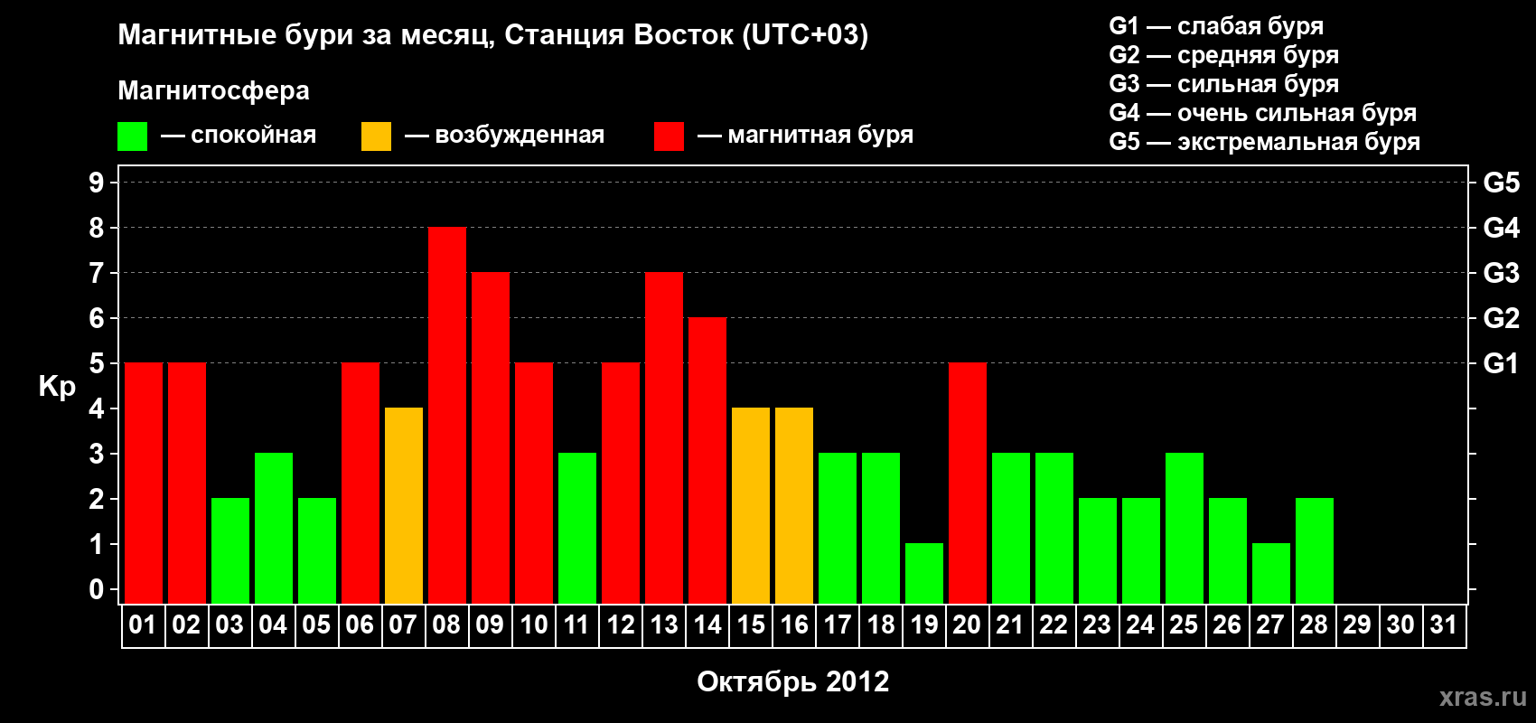 Магнитные бури локации Станция Восток в октябре 2012 года