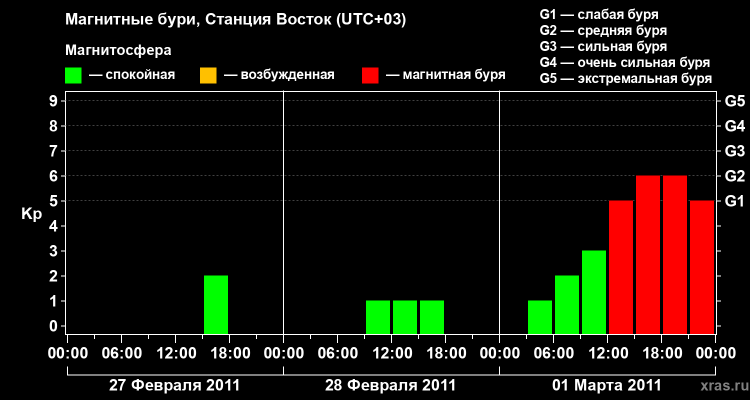 Магнитные бури локации Станция Восток — 1 марта 2011 года