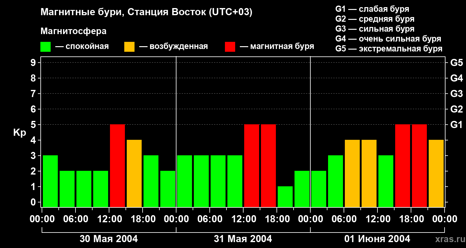 Магнитные бури локации Станция Восток — 1 июня 2004 года
